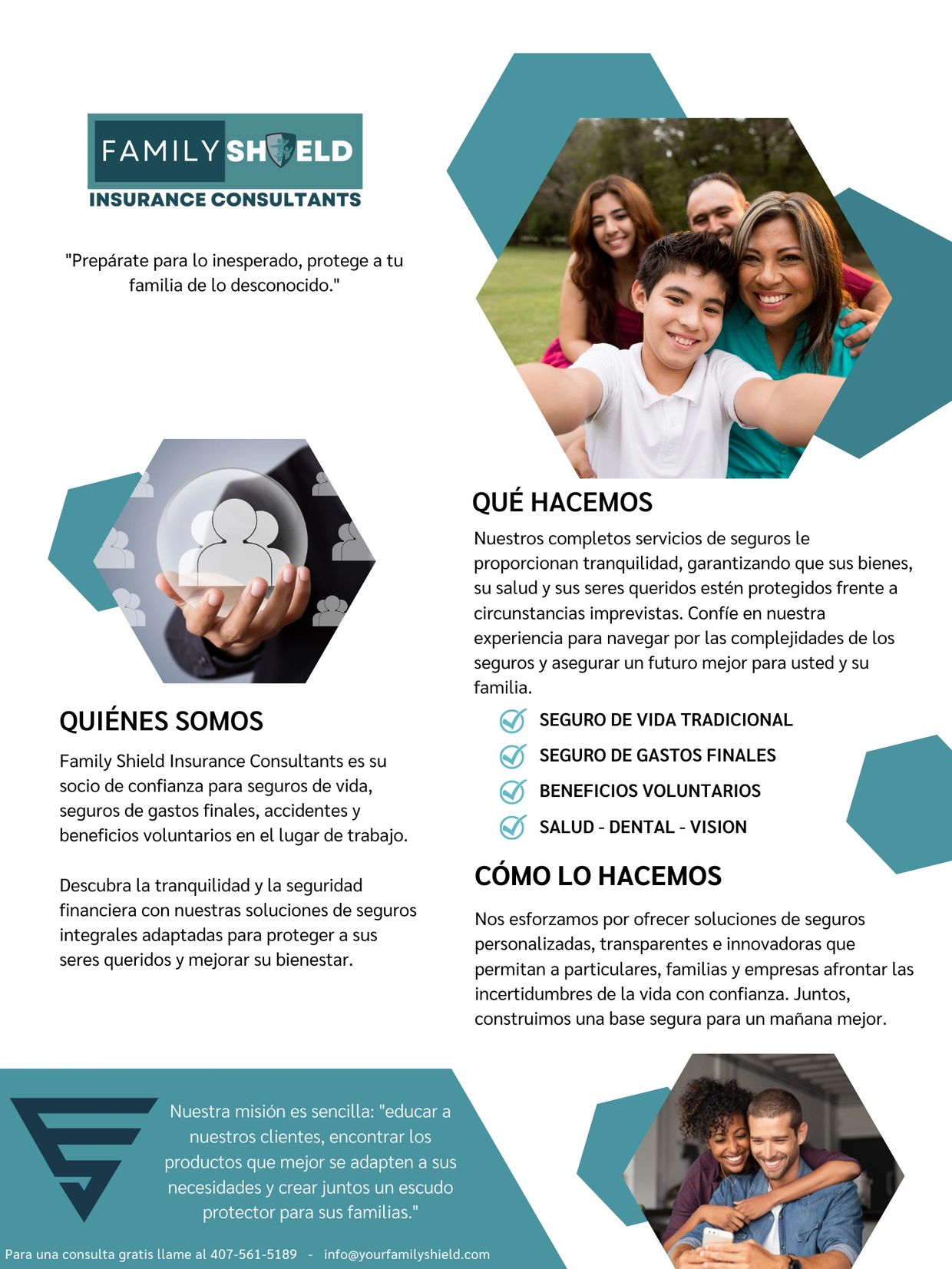 En Family Shield Insurance Consultants, nos dedicamos a salvaguardar los sueños y el futuro de nuestros clientes y sus familias. Nuestro compromiso con un servicio excepcional, integridad y apoyo inquebrantable refleja nuestra genuina preocupación por el bienestar de las familias, empresas y comunidades a las que servimos.